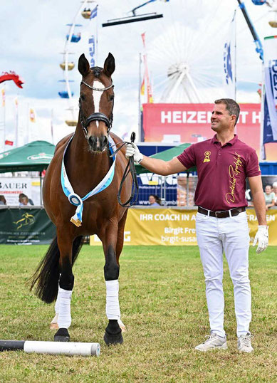 Vize-Championesse der dressurbetonten Stutfohlen wurde eine junge Dame von Esperanto / Zalando welche die Richter wie folge kommentierten: „Ein weit entwickeltes, harmonisch konstruiertes Fohlen. Sie bewegt sich stets bergauf und elastisch, dabei immer mit guter Selbsthaltung.“ Herzlichen Glückwunsch dem Züchte rund Besitzer sowie unserem Neumitglied Richard Schindele, Unterthingau!