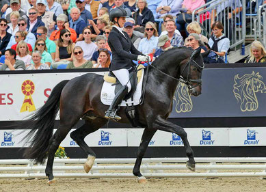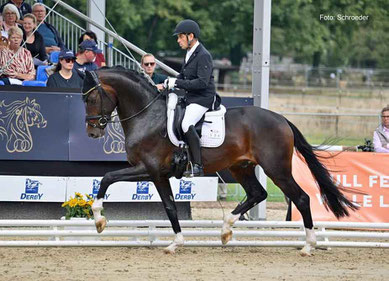 unter anderem auch die Vorjahressiegerin Emma vom Imhoff (Cornet Obolensky / Cassini I). Nach dem 6. Platz in der Qualifikation zeigte die braune Stute, aus der Zucht und